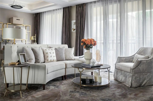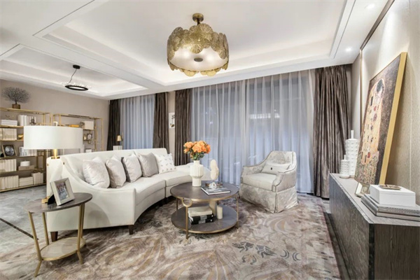 法式轻奢将优雅与奢华完美融合,散发出独特的高贵气息。柔和的色调、精美的雕花家具、奢华的织物以及精致的水晶灯饰,每一处细节都经过精心设计,仿佛在诉说着主人对生活品质的追求和对美的无尽向往。