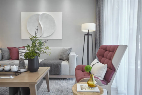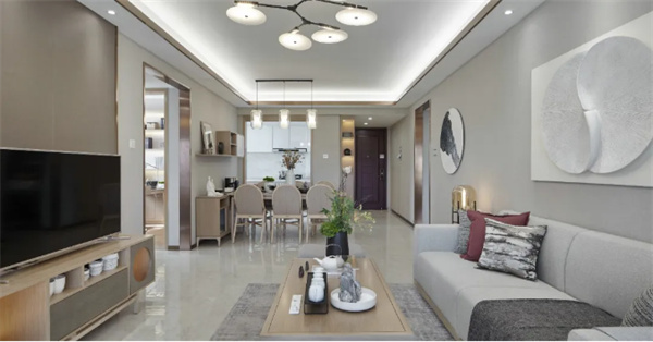 软装配饰方面,精心挑选的舒适家具和简洁的装饰布置,使客厅更显时尚端庄,整体设计风格简约而不简单,完美地融合了现代感和舒适感,让整个空间感到宜居又美观。