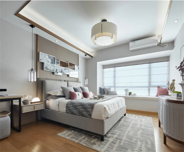 主卧采用了极简的设计语言,白色和浅灰色是主要色调,突显整体空间的清新与宽敞感。床品选择了高质感的纯棉,搭配一些柔和的装饰枕,营造出温馨的氛围。简约的床头柜和灯具设计,为主人带来的是一个舒适轻松的睡眠空间。
