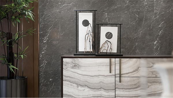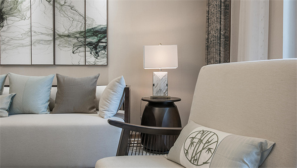 光线的魔力在于赋予美感以艺术性,茶几上的瓷器和一对白色石狮摆件则汲取了东方雅致的意境,将简洁大气和精巧雅致融合在一起,独领东方美学的风雅。