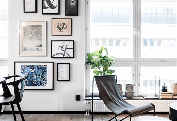 餐厅完美延续客厅的整体基调。深色圆桌和餐椅的设计,加上丰富的绿植点缀为用餐体验增色不少。墙壁上的装饰画营造出艺术氛围,使之成为家人和朋友欢聚美好时光的绝佳场所。