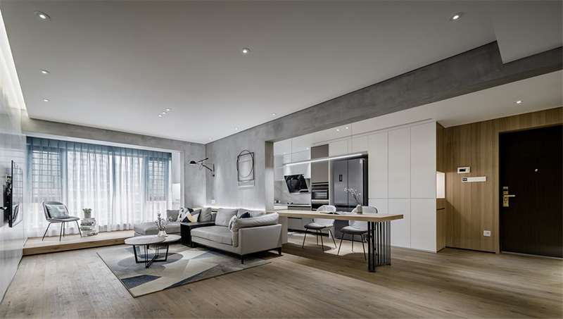 本案选用现代极简风格装修,通过简洁、清新的设计元素,创造了一个舒适、宁静的家居环境,让极简主义的设计原则在整个空间中得到了充分体现。